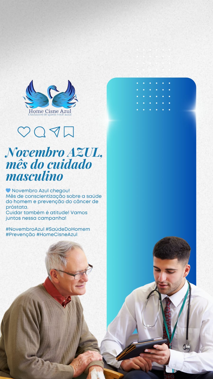 #NovembroAzul #AutocuidadoMasculino #SaúdeDoHomem #Prevenção #HomeCisneAzul #CuidarÉAmor